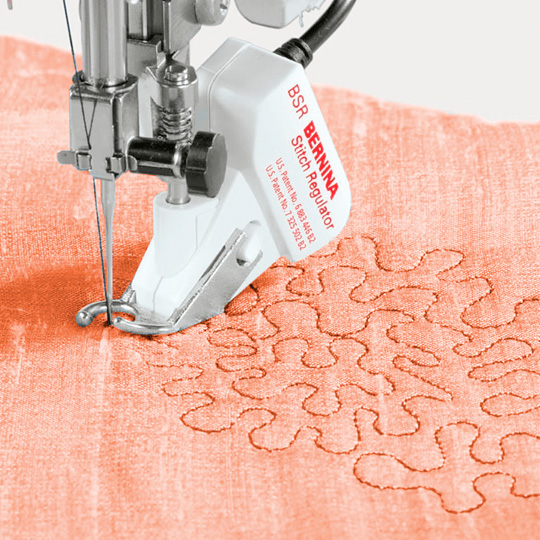 Лапка Bernina (BSR) помогает сохранять одинаковую длину стежков при свободном шитье и квилтинге, независимо от скорости.